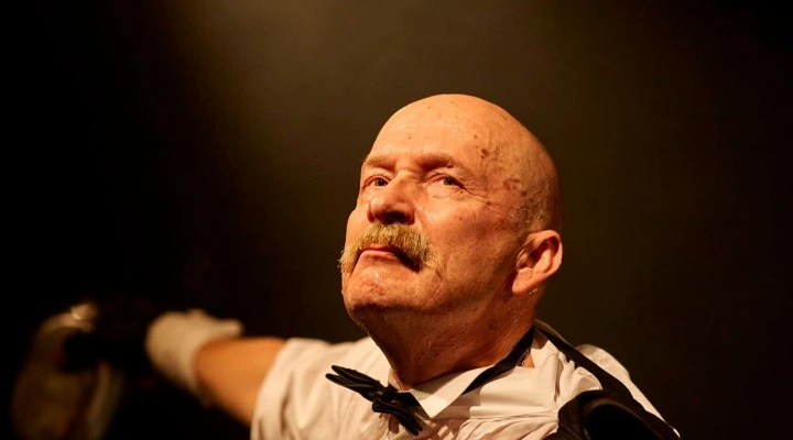 В основе спектакля — история о человеке, который не сдается перед трудностями и проявляет силу характера. В центре — поиск смысла, достоинства и борьба личности с внешними обстоятельствами. Постановка создана по знаменитому литературному произведению.
